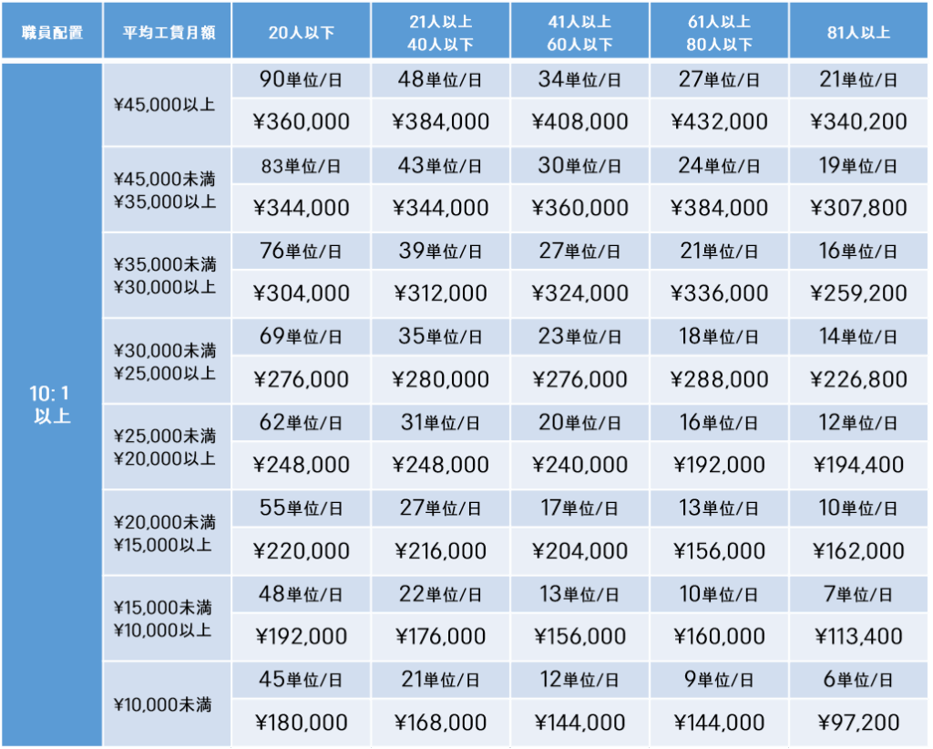 就労移行支援体制加算Ⅰ:平均工賃月額により7~93単位×当月の延べ利用数×10円