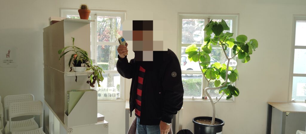通所後、施設外支援に参加可能かを確認するため、体温を測ります。