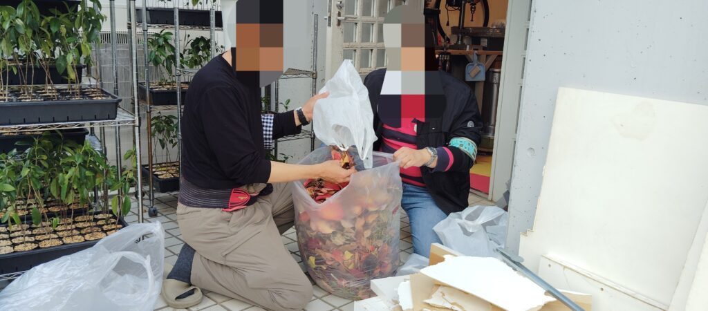 事業所に着いたら、リーダーがゴミは分別し、まとめます。除草・清掃活動におけるゴミは各自治体のルールに従って処分をお願いします。