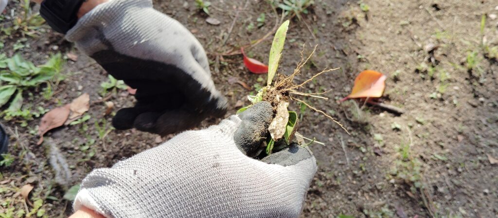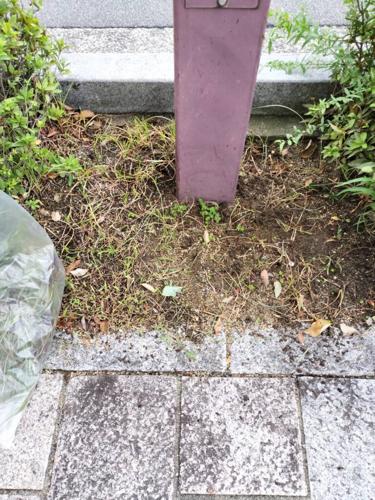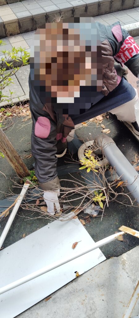 2月2日(月) 場所:兵庫県姫路市の事業所周辺 草の根に付いた土の処理