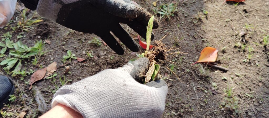 除草作業をしていたら、こんな感じで気持ちよく雑草が抜けて面白かったそう。