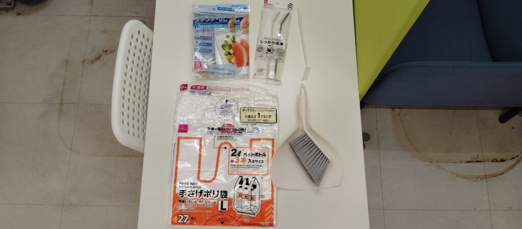 清掃に必要そうなものを職員さんと相談し用意してもらいました。