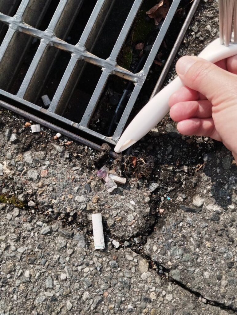 今日もグレーチングの隙間にたくさんの吸い殻を見つけました。