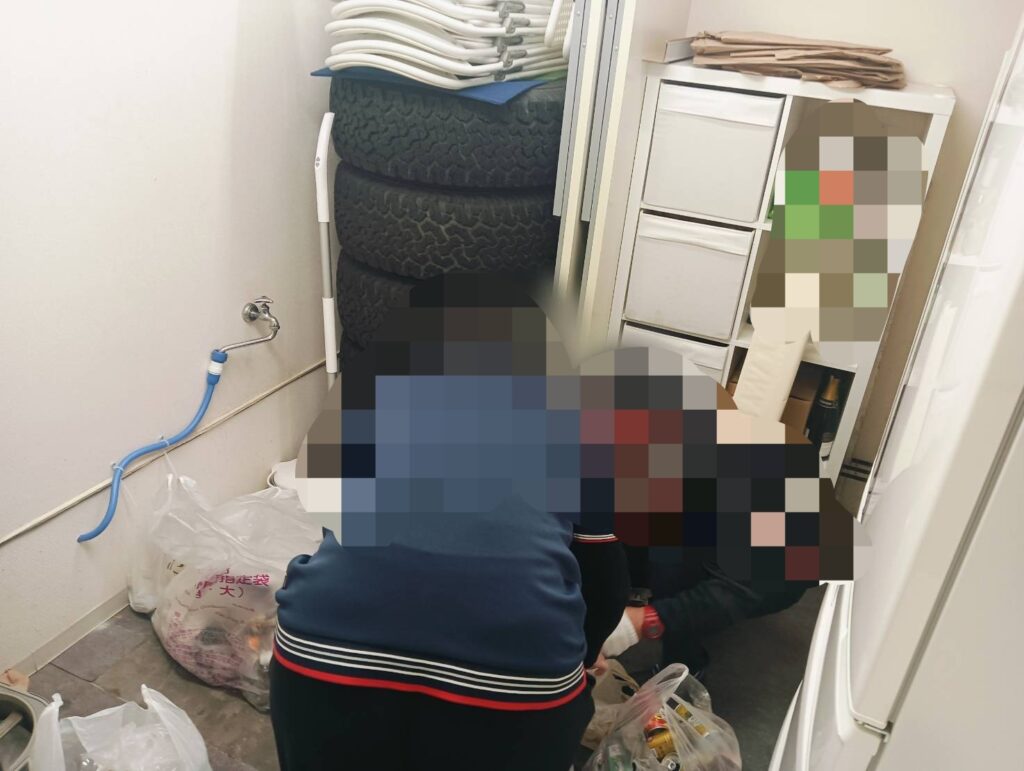 作業を終え、スタッフと一緒にゴミの仕分けをしている様子。