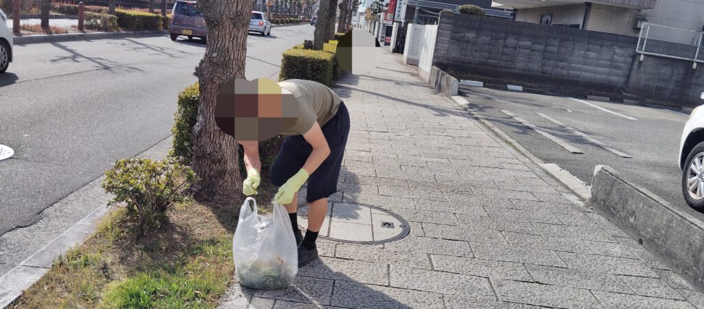 ・ゴミ拾いを熱心に行うあまり車道にはみ出さないように安全を最優先で作業を行う