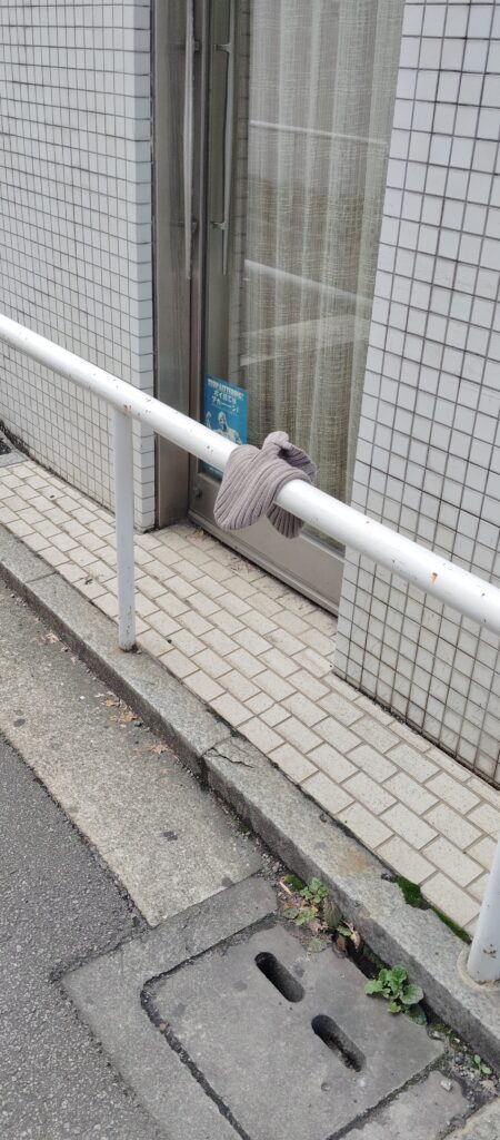 路上に帽子が落ちていました。交番等が近隣になかったので、手すりに掛けておきました。
