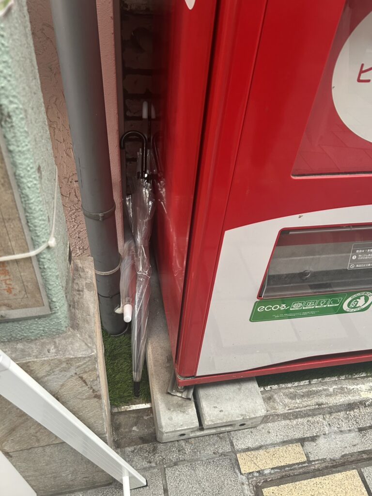 お店とお店の間の狭いスペースに傘がありました。お店の方に尋ねるとお店のものではないということでした。持ち帰っても良いものか判断が難しいゴミだったので、持ち帰らずに、こういう場合はどうするか他の利用者様や職員に相談することにしました。