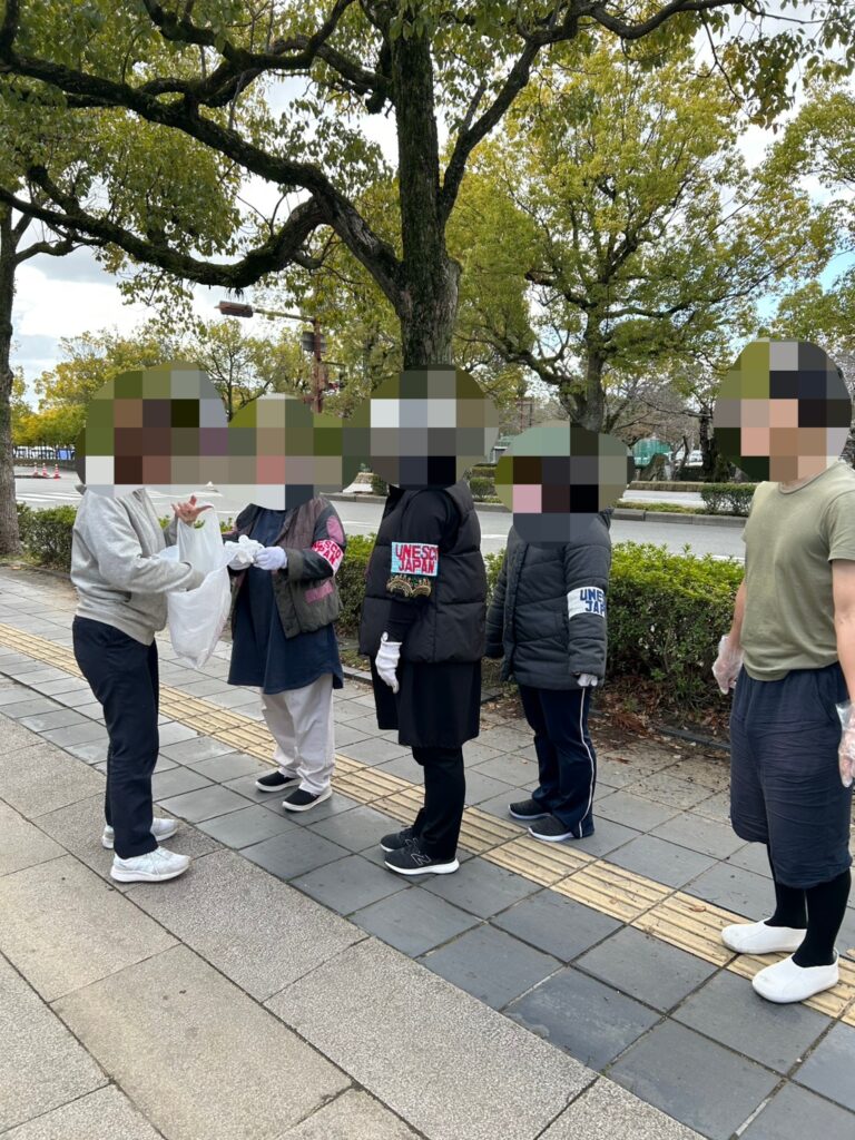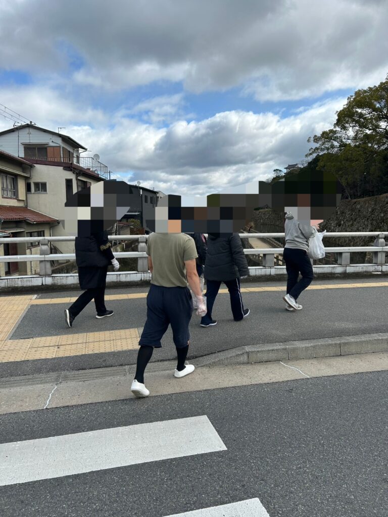今日は姫路の大通りでゴミ拾いを行うことにしました。移動中も熱心にゴミ拾いをされる利用者の様子です。