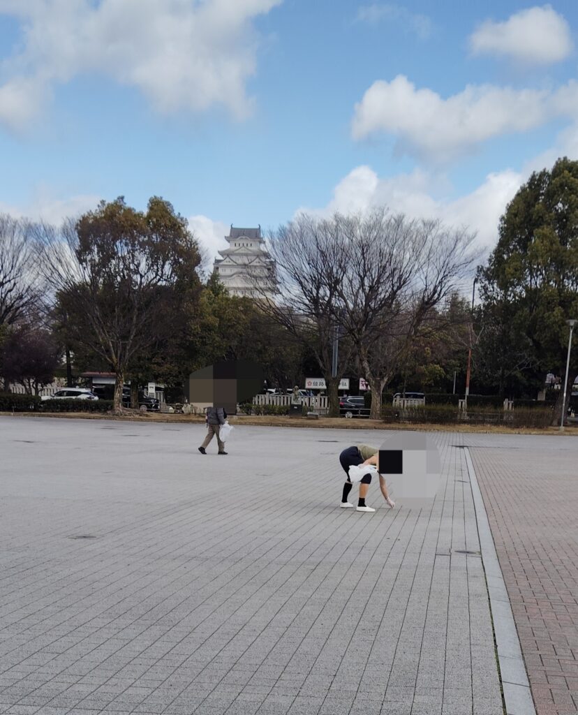 このあたりに落ちているものはほぼなく、タバコの吸い殻やプラスチックのパッケージなどでした。姫路城が近いこの場所では、ボランティアの方々が活動をされていてゴミは拾いつくされているようです。