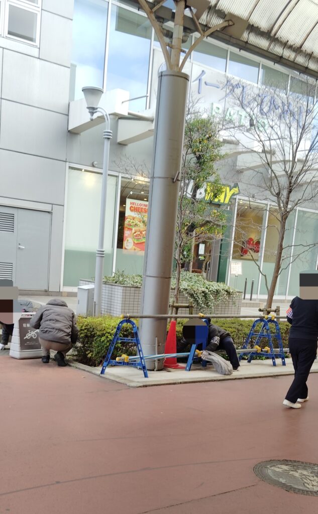 本日の現場です。作業中も自転車や歩行者の邪魔にならないように注意しながら作業を行います。