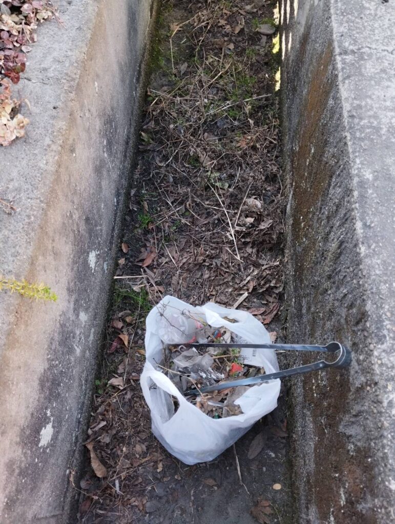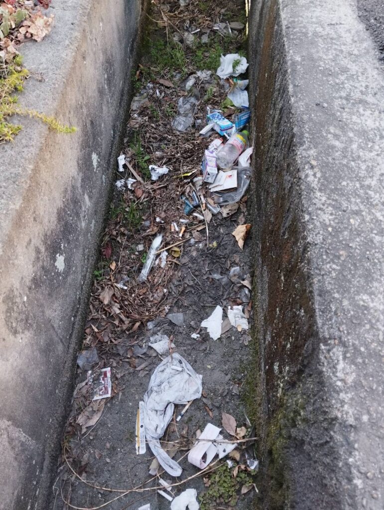 側溝にたくさんゴミが落ちているのを見つけたのでゴミ拾いをしました。
