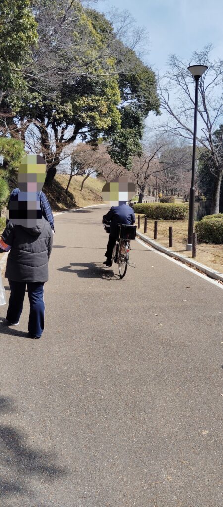 ・現場までの移動中も後方の自転車などに注意。道幅いっぱいに広がって歩かない