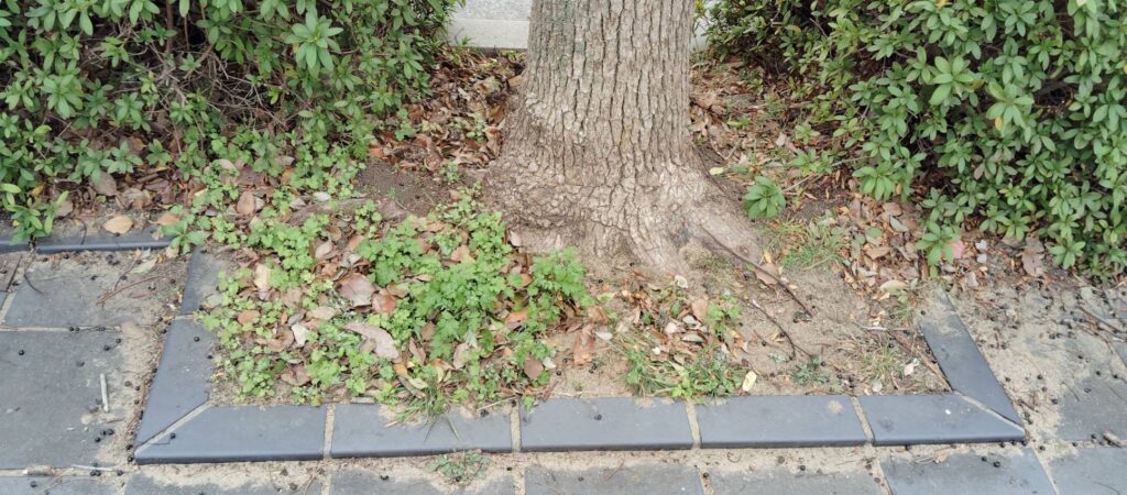 好古園周辺の街路樹の植え込みの除草を行いました。