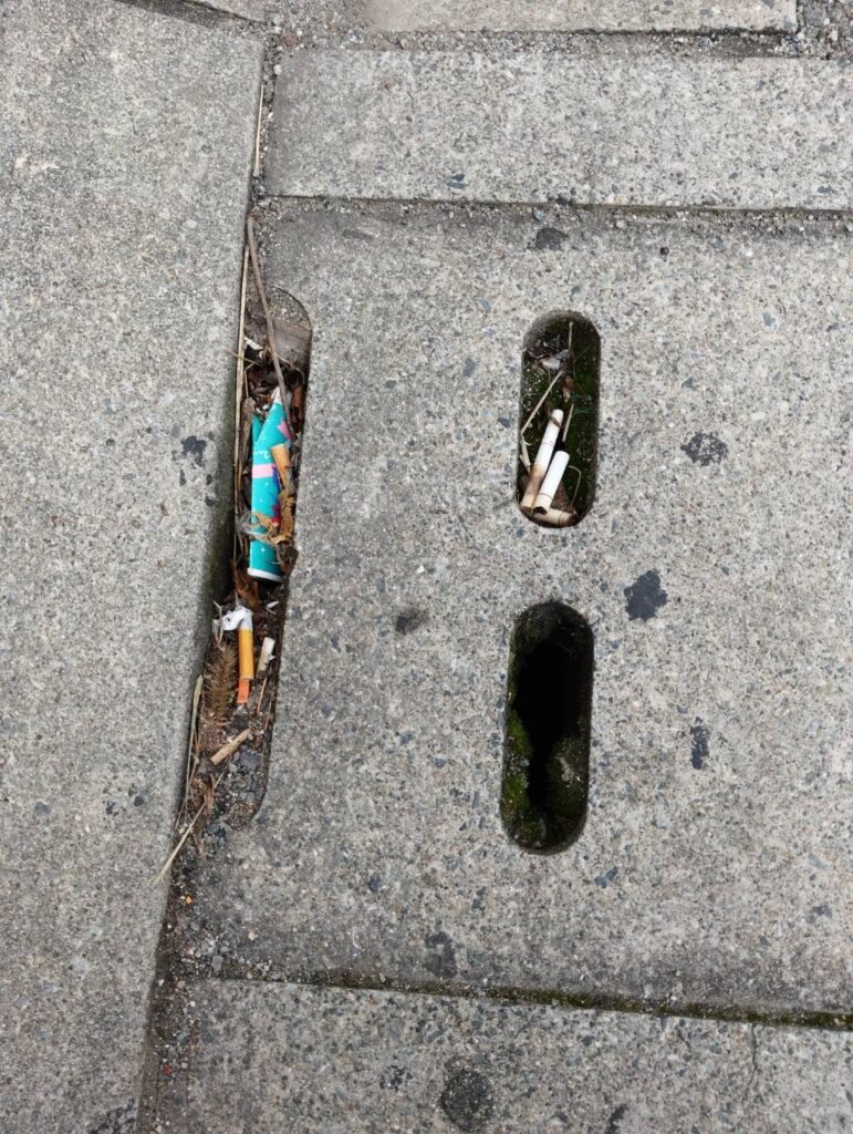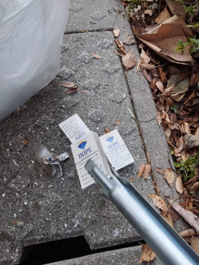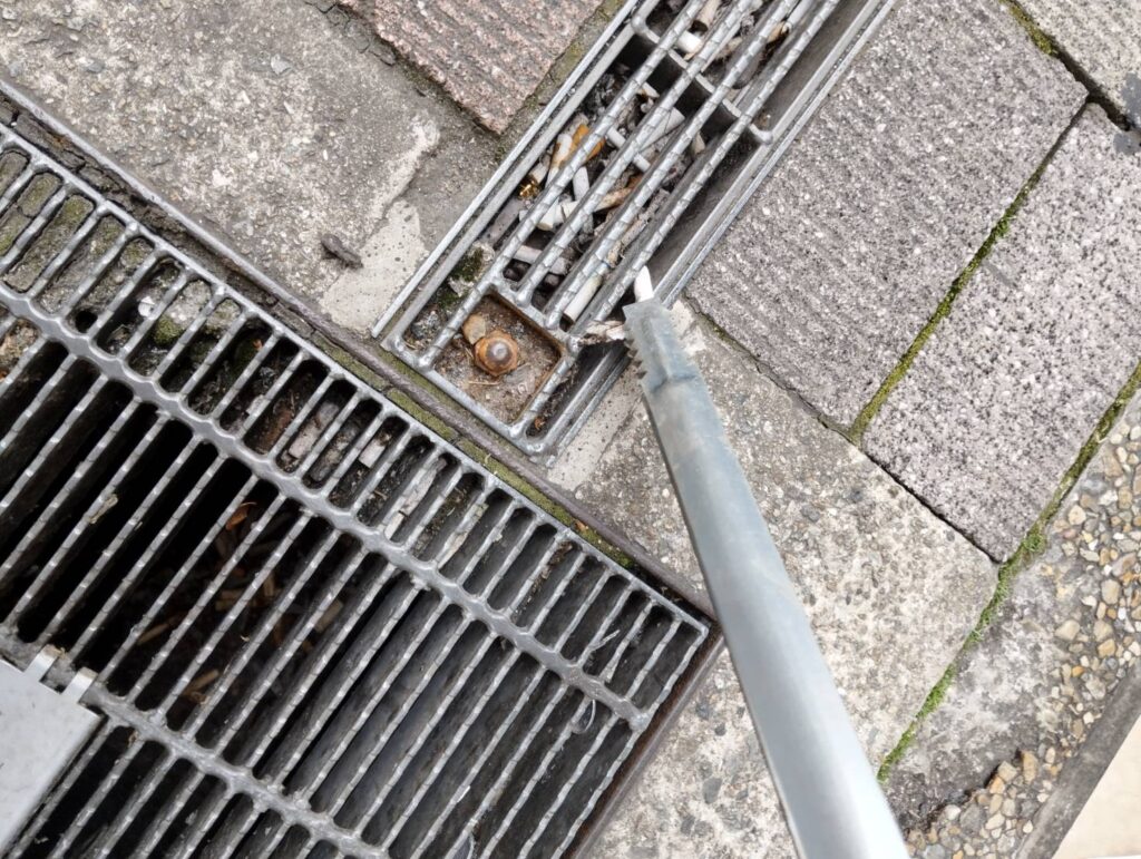 目が細かいグレーチングの吸い殻は、これ専用の道具があればいいなと思うくらい取りにくかったそう。火箸を差し込んで挟めないので、ほじり出す感じで取られたとのこと。