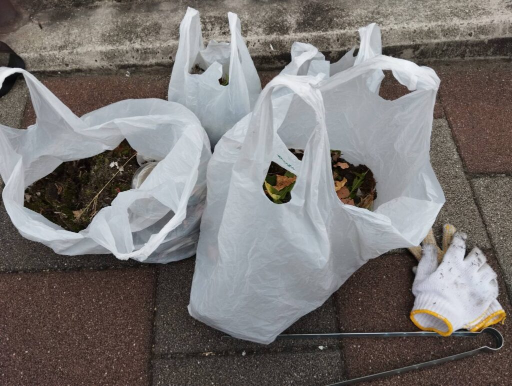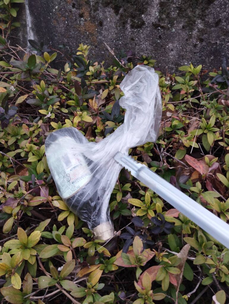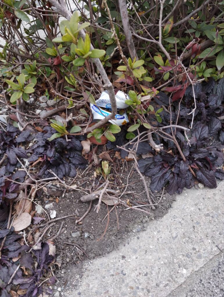 しげみにゴミが捨てられていると取りにくくて大変とのこと。