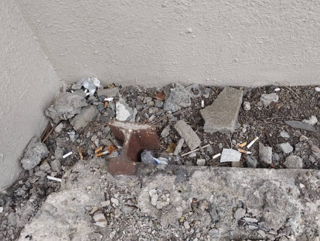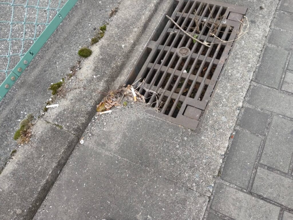 やはり排水口の付近にはたくさんたばこのポイ捨てがある。灰皿ではないのにこの量。