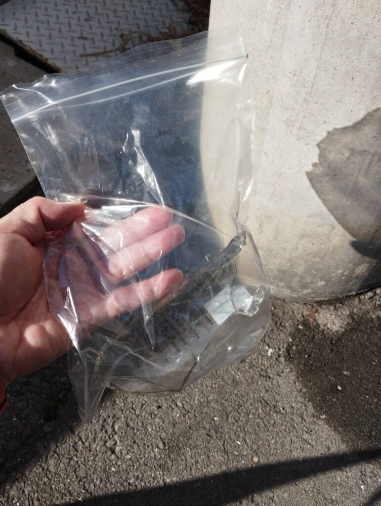 ケガをしないように気を付けて厚手のフリーザーパックに回収した。