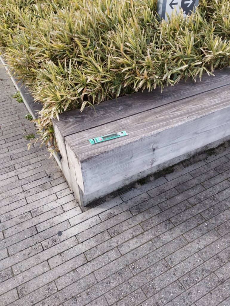 近くに交番もなく、お店やマンション、駅など管理主体の近隣ではなかったため、落とし主が戻ってきた際に、気付きやすいように近くのベンチに置くことに。