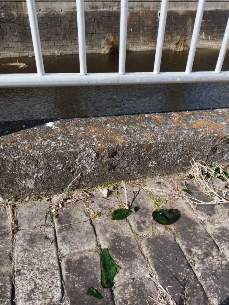 今日も割れた瓶を回収した。また地域の粗大ごみの日にまとめて出せるように、事業所の保管場所に分別して保管しておく。