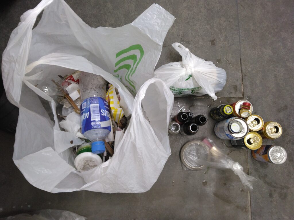今日は早めに袋がいっぱいになったので、事業所にかえってスタッフとゴミの分別を行った。